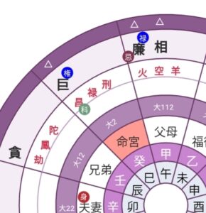 ・命宮‥先天的運命、性格、考え方など